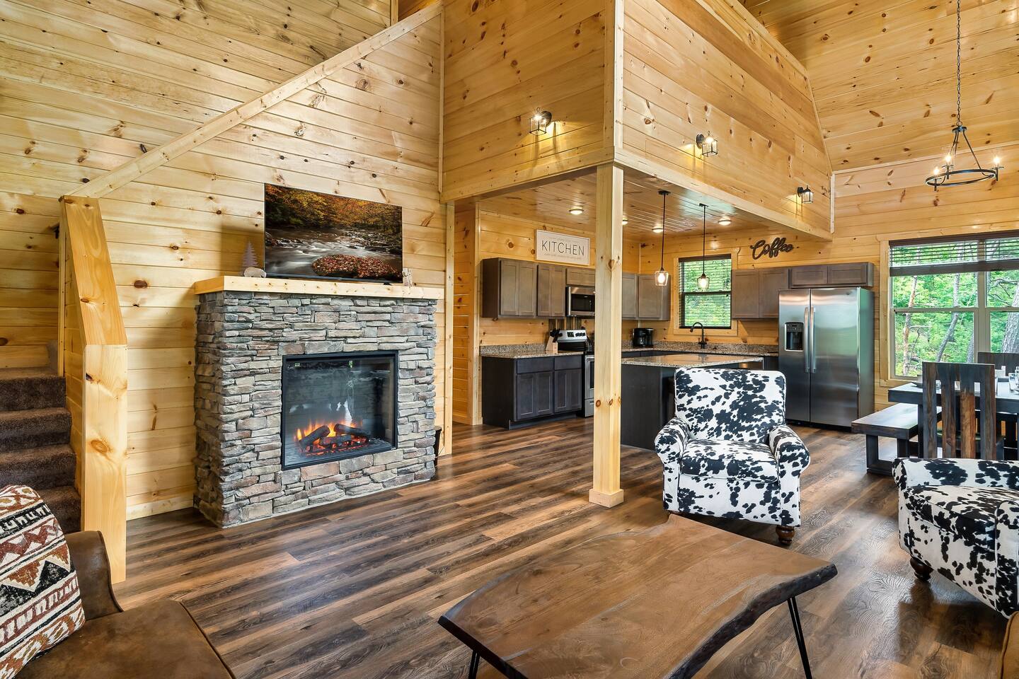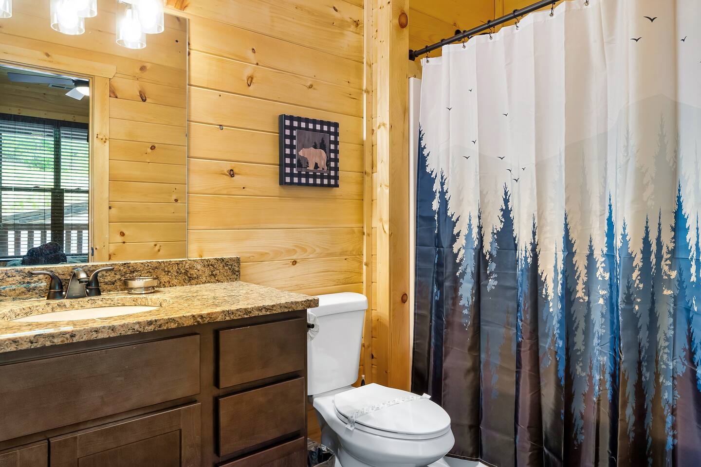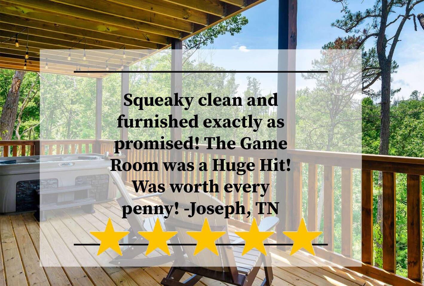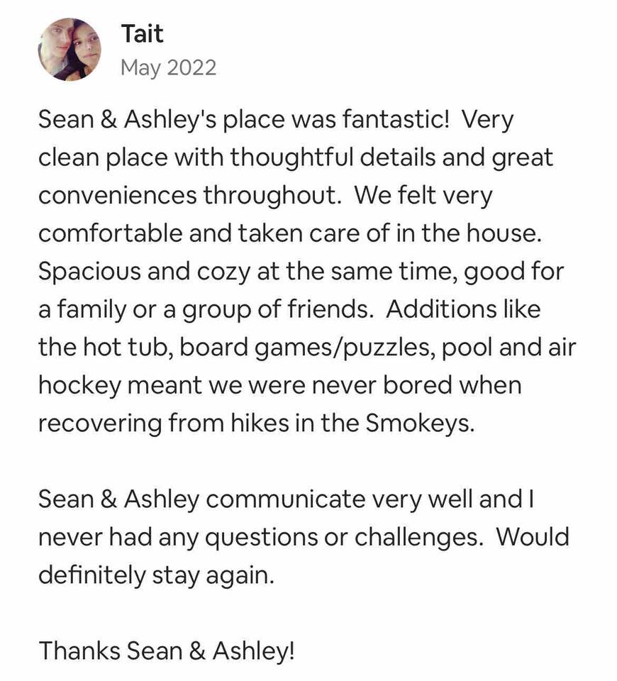 KEY FEATURES: ☀ Sleeps 16: 5 bedrooms (3 king beds, 1 queen loft, 1 queen-over-queen bunk + sleeper sofas) ☀ 4.5 luxurious bathrooms ☀ Fully-equipped kitchen with granite countertops & stainless steel appliances ☀ Game room with air hockey, poker table, pool table, & arcade games ☀ Private movie theater with a 4K screen & leather sofas ☀ Multiple decks with seating & a large hot tub ☀ Peaceful 2.5-acre wooded lot with scenic views ☀ Dog Friendly - up to 2 dogs under 50lbs ☀ Electric fireplace, central heating & air, washer/dryer ☀ High-speed Wi-Fi; great for REMOTE WORK Here Are A Few Kind Words From Our Past Guests: “This cabin was everything we dreamed of and more! The game room and theater were a hit for our family. Location couldn’t be better for exploring Pigeon Forge and Gatlinburg. Can’t wait to return!” – Amanda “Timber Ridge exceeded our expectations! From the luxurious king suites to the hot tub overlooking the forest, it was perfect. The kids loved the bunk beds and air hockey.” – Daniel “An incredible cabin for a group getaway! Spacious, clean, and full of entertainment. Sitting on the deck at night was magical. Folly & Forge have thought of everything.” – Emily BEDROOMS & BATHROOMS Timber Ridge comfortably sleeps up to 16 guests across five thoughtfully designed bedrooms. • Main Level: 2 king bedrooms, each with ensuite bathrooms and flat-screen TVs. • Loft: Queen bed with a cozy reading nook and a half bath. • Lower Level: King bedroom and a queen-over-queen bunk room, each with ensuite bathrooms and TVs. Additional sleeping spaces include pull-out sofas in the theater and game room. Kitchen & Dining The kitchen is a chef’s delight, featuring granite countertops, stainless steel appliances, and Keurig and drip coffee makers. The open-plan dining area seats your entire group, with extra seating available on the deck for outdoor meals. Entertainment Spaces ☀ Game Room: Enjoy hours of fun with an arcade machine, air hockey table, poker table, and a pool table. The wall of windows brings in natural light and offers stunning views. ☀ Movie Theater: Kick back with a 4K screen and leather seating for a cinematic experience. ☀ Outdoor Decks: Multiple levels with seating, a BBQ grill, and a hot tub for ultimate relaxation. LOCAL ATTRACTIONS Timber Ridge’s location is perfect for exploring top attractions in Sevierville and the surrounding area. Here are five must-visit spots: 1. Dollywood (10 min drive) – Iconic amusement park with rides, shows, and Southern charm. 📍 2700 Dollywood Parks Blvd, Pigeon Forge, TN 37863 2. Great Smoky Mountains National Park (20 min drive) – Breathtaking hiking trails, waterfalls, and wildlife. 📍 Gatlinburg, TN 37738 3. Titanic Museum (15 min drive) – Interactive exhibits in a half-scale replica of the Titanic. 📍 2134 Parkway, Pigeon Forge, TN 37863 4. Anakeesta (25 min drive) – A mountaintop adventure park with zip-lining, shops, and dining. 📍 576 Parkway, Gatlinburg, TN 37738 5. The Island in Pigeon Forge (12 min drive) – Shopping, dining, and the Great Smoky Mountain Wheel. 📍 131 Island Dr, Pigeon Forge, TN 37863