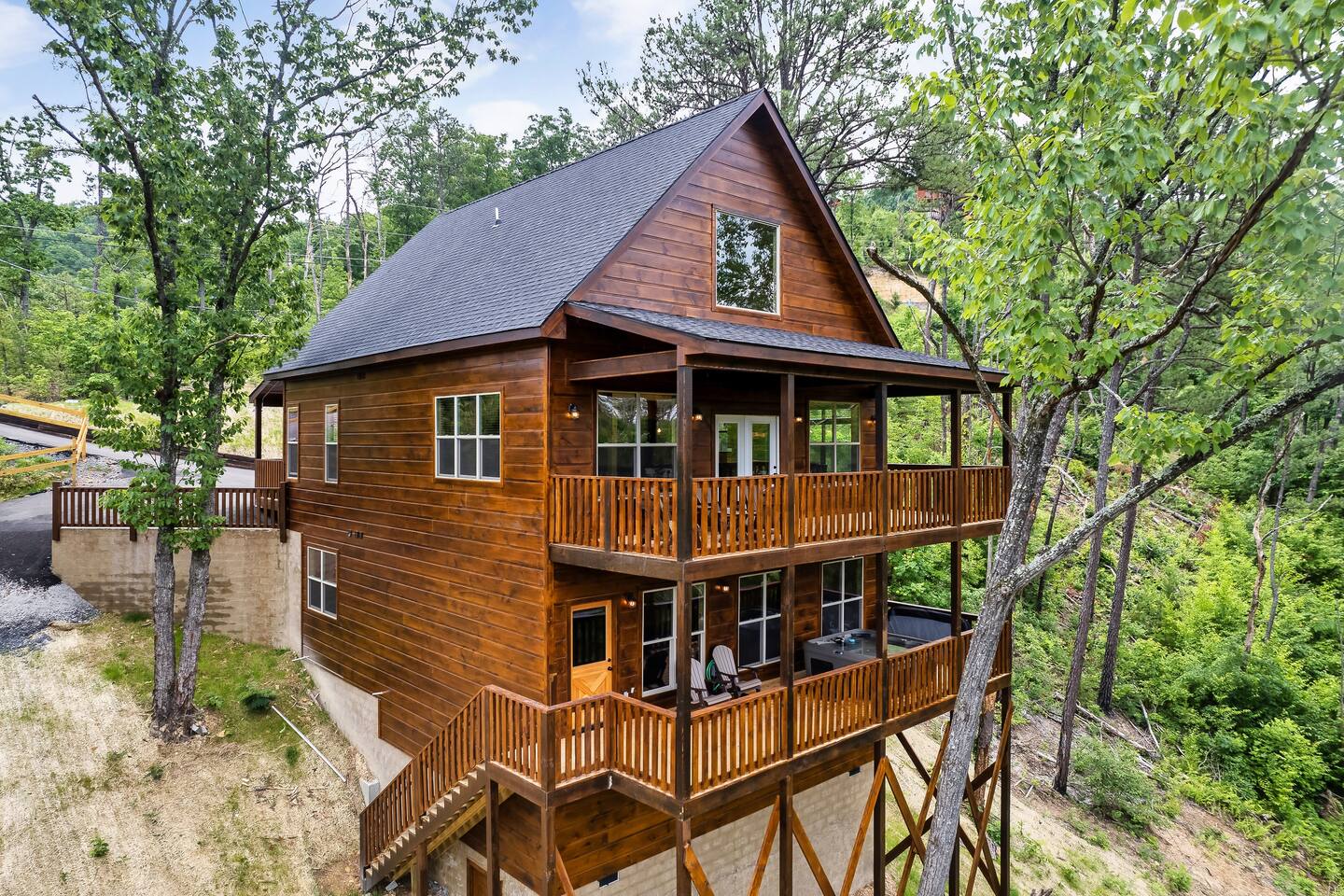 Brought to you by Folly & Forge Vacations, Discover “Timber Ridge,” a stunning 3-level log cabin nestled in peaceful wooded surroundings near Sevierville, TN. This 5-bedroom, 4.5-bath luxury retreat offers over 3,200 sq. ft. of space for up to 16 guests. Enjoy a massive game room, movie theater, multiple decks, a hot tub, and short drives to Dollywood, Pigeon Forge, and the Great Smoky Mountains National Park. 📍 10 Min Drive to Pigeon Forge/Dollywood 📍 20 Min Drive to Gatlinburg