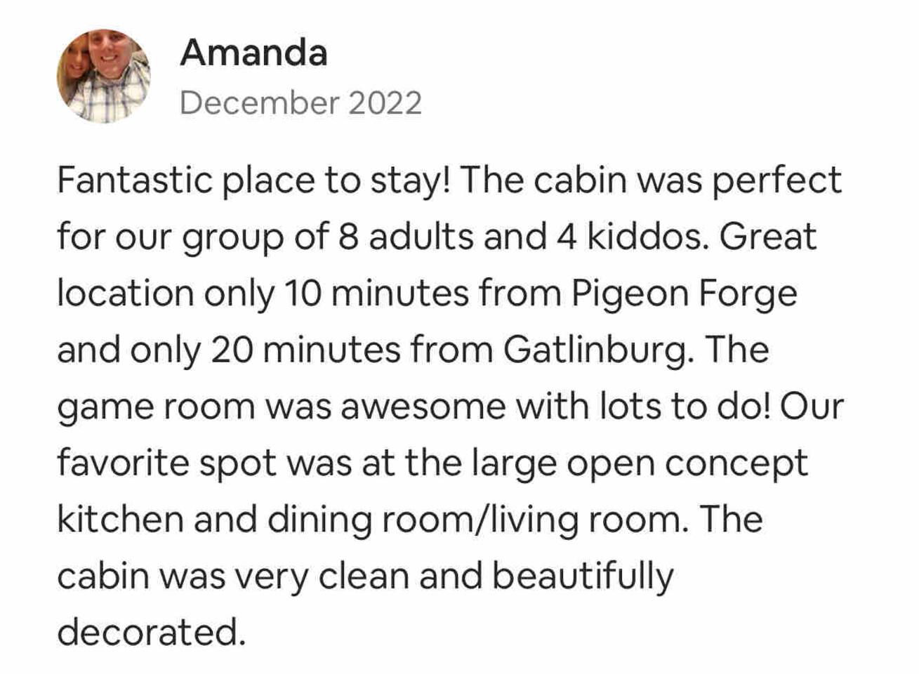 This cabin is located close to all of the action! Less than 10 minutes to Pigeon Forge and Dollywood, and only 20 minutes to Gatlinburg.